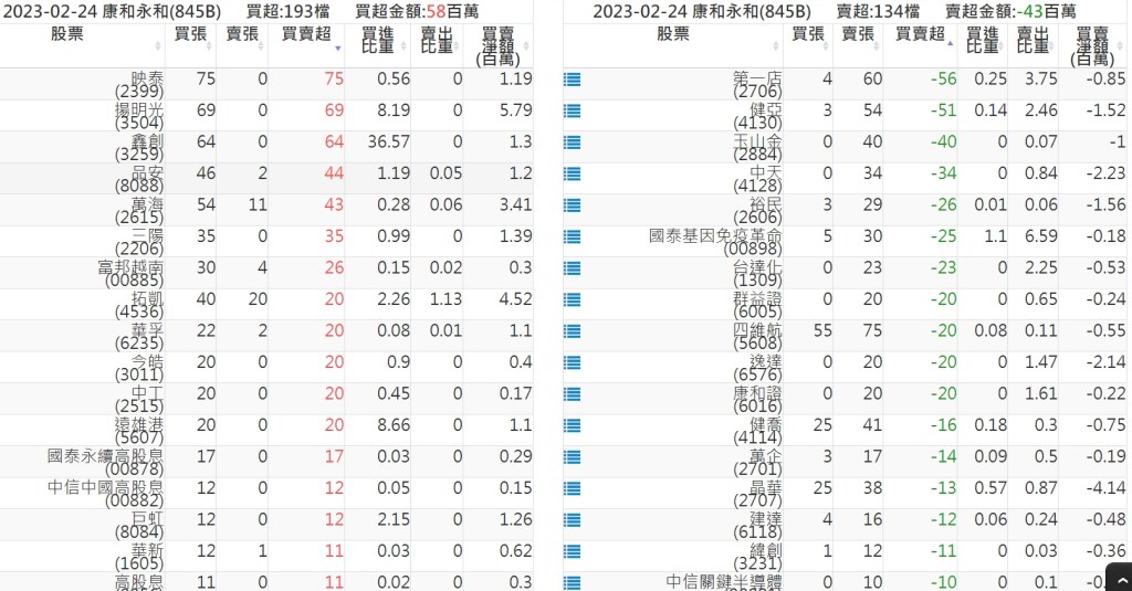 2023-0224關鍵券商買賣超 2023-02-25 股狗網小編 籌碼面每日資訊 發表留言 投資達人APP上線囉!!!『安裝APP』: 關鍵券商買賣超: 臺銀證券(1040): 台灣摩根士丹利(1470): 凱基台北(9268): 凱基信義(9216): 元大土城永寧(9875): 康和永和(845B) : 富邦建國(9658): 免責宣言 本網站文章所提供資訊僅供參考,並無任何推介買賣之意,投資人應自行承擔交易風險。 分享此文: 分享到 X(在新視窗中開啟) X 分享到 Facebook(在新視窗中開啟) Facebook 喜歡 正在載入...
