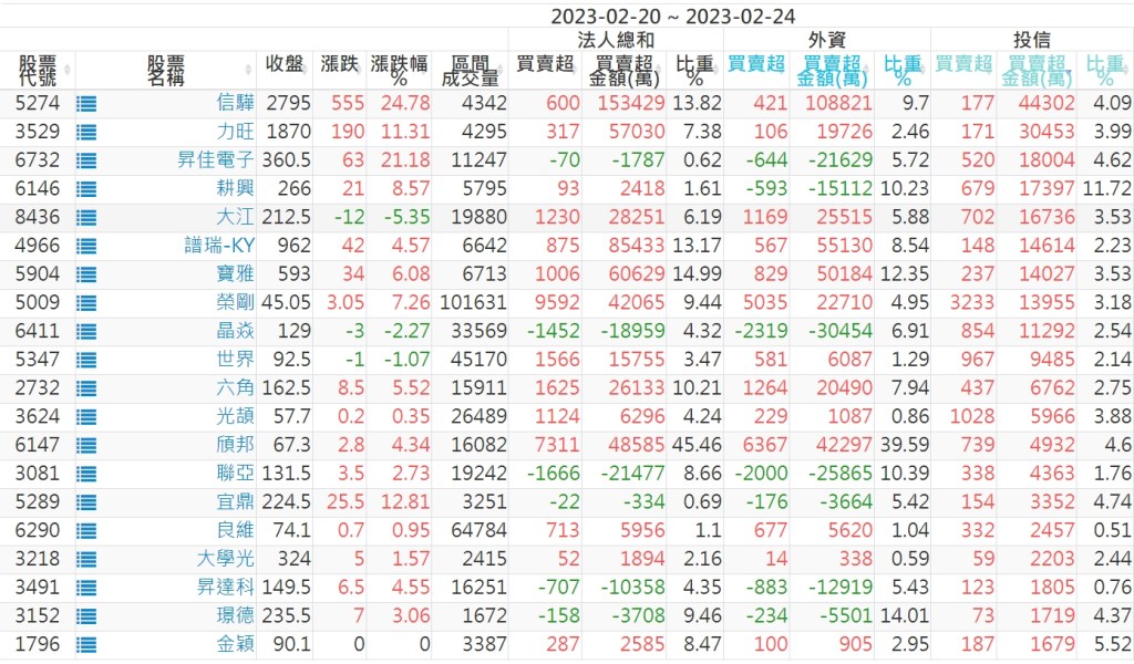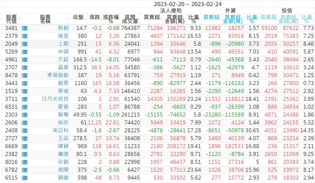 2023/02/20~2023/02/24近5日【投信】買賣超個股 2023-02-26 股狗網小編 投資誌-大盤 發表留言 投資達人APP上線囉!!!『安裝APP』: 【上市投信買超個股】(以金額排行,單位:萬) 【上市投信賣超個股】(以金額排行,單位:萬) 【上櫃投信買超個股】(以金額排行,單位:萬) 【上櫃投信賣超個股】(以金額排行,單位:萬) 免責宣言 本網站文章所提供資訊僅供參考,並無任何推介買賣之意,投資人應自行承擔交易風險。 分享此文: 分享到 X(在新視窗中開啟) X 分享到 Facebook(在新視窗中開啟) Facebook 喜歡 正在載入...