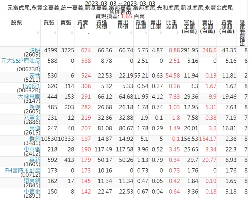 2023-0303主力買賣超個股 2023-03-04 股狗網小編 籌碼面每日資訊 發表留言 投資達人APP上線囉!!!『安裝APP』: 可參考下文 『如何查詢當沖、隔日沖分公司券商買賣』 主力當沖券商: 『元富虎尾』,『永豐金嘉義』,『統一嘉義』,『凱基嘉義』,『富邦嘉義』,『富邦虎尾』,『光和虎尾』,『凱基虎尾』,『永豐金虎尾』。 『當沖標的』 『買超股票』 『賣超股票』 免責宣言 本網站文章所提供資訊僅供參考,並無任何推介買賣之意,投資人應自行承擔交易風險。 分享此文: 分享到 X(在新視窗中開啟) X 分享到 Facebook(在新視窗中開啟) Facebook 喜歡 正在載入...