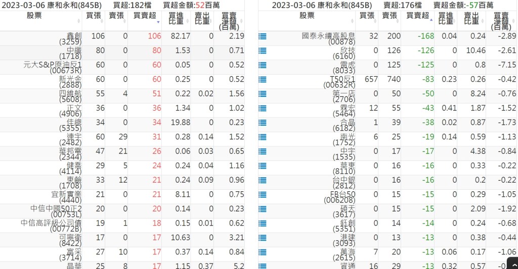 2023-0306關鍵券商買賣超 2023-03-07 股狗網小編 籌碼面每日資訊 發表留言 投資達人APP上線囉!!!『安裝APP』: 關鍵券商買賣超: 臺銀證券(1040): 台灣摩根士丹利(1470): 凱基台北(9268): 凱基信義(9216): 元大土城永寧(9875): 康和永和(845B) : 富邦建國(9658): 免責宣言 本網站文章所提供資訊僅供參考,並無任何推介買賣之意,投資人應自行承擔交易風險。 分享此文: 按一下即可分享至 X(在新視窗中開啟) X 按一下以分享至 Facebook(在新視窗中開啟) Facebook 喜歡 正在載入...
