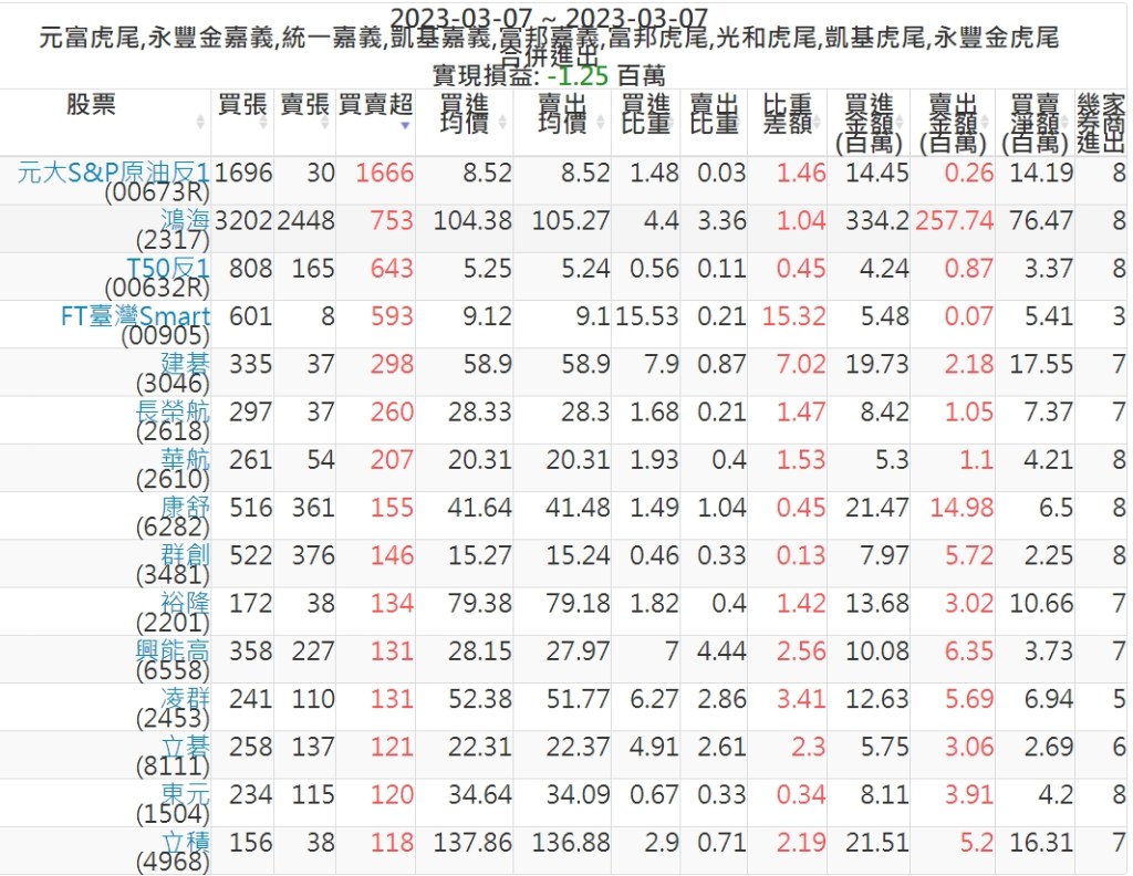 2023-0307主力買賣超個股 2023-03-08 股狗網小編 籌碼面每日資訊 發表留言 投資達人APP上線囉!!!『安裝APP』: 可參考下文 『如何查詢當沖、隔日沖分公司券商買賣』 主力當沖券商: 『元富虎尾』,『永豐金嘉義』,『統一嘉義』,『凱基嘉義』,『富邦嘉義』,『富邦虎尾』,『光和虎尾』,『凱基虎尾』,『永豐金虎尾』。 『當沖標的』 『買超股票』 『賣超股票』 免責宣言 本網站文章所提供資訊僅供參考,並無任何推介買賣之意,投資人應自行承擔交易風險。 分享此文: 按一下即可分享至 X(在新視窗中開啟) X 按一下以分享至 Facebook(在新視窗中開啟) Facebook 喜歡 正在載入...