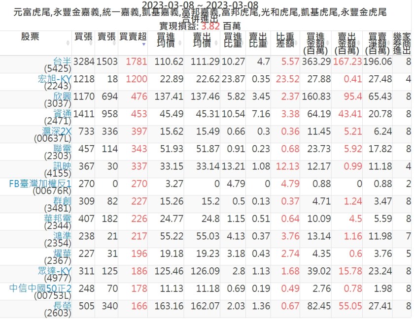 2023-0308主力買賣超個股 2023-03-09 股狗網小編 籌碼面每日資訊 發表留言 投資達人APP上線囉!!!『安裝APP』: 可參考下文 『如何查詢當沖、隔日沖分公司券商買賣』 主力當沖券商: 『元富虎尾』,『永豐金嘉義』,『統一嘉義』,『凱基嘉義』,『富邦嘉義』,『富邦虎尾』,『光和虎尾』,『凱基虎尾』,『永豐金虎尾』。 『當沖標的』 『買超股票』 『賣超股票』 免責宣言 本網站文章所提供資訊僅供參考,並無任何推介買賣之意,投資人應自行承擔交易風險。 分享此文: 按一下即可分享至 X(在新視窗中開啟) X 按一下以分享至 Facebook(在新視窗中開啟) Facebook 喜歡 正在載入...