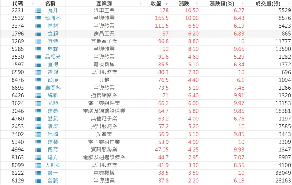 2023-0308股價創20日新高爆量上漲股 2023-03-09 股狗網小編 選股條件 發表留言 投資達人APP上線囉!!!『安裝APP』: 利用股狗選股的選股條件可以【挑選突破20日新高,爆量上漲起漲點股票】 1.股狗選股 https://www.stockdog.com.tw 2.選股條件: a.收盤價創20日新高 b.當日漲幅 > 2% C.成交量大於5日均量2倍 免責宣言 本網站文章所提供資訊僅供參考,並無任何推介買賣之意,投資人應自行承擔交易風險。 分享此文: 按一下即可分享至 X(在新視窗中開啟) X 按一下以分享至 Facebook(在新視窗中開啟) Facebook 喜歡 正在載入...