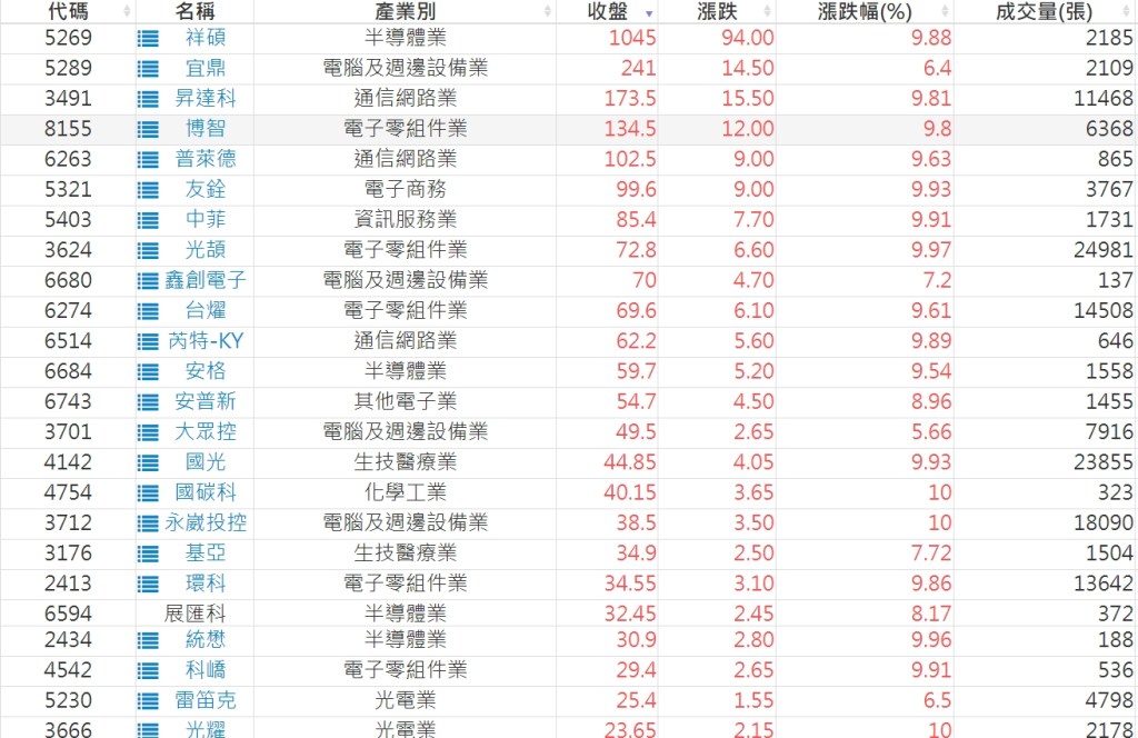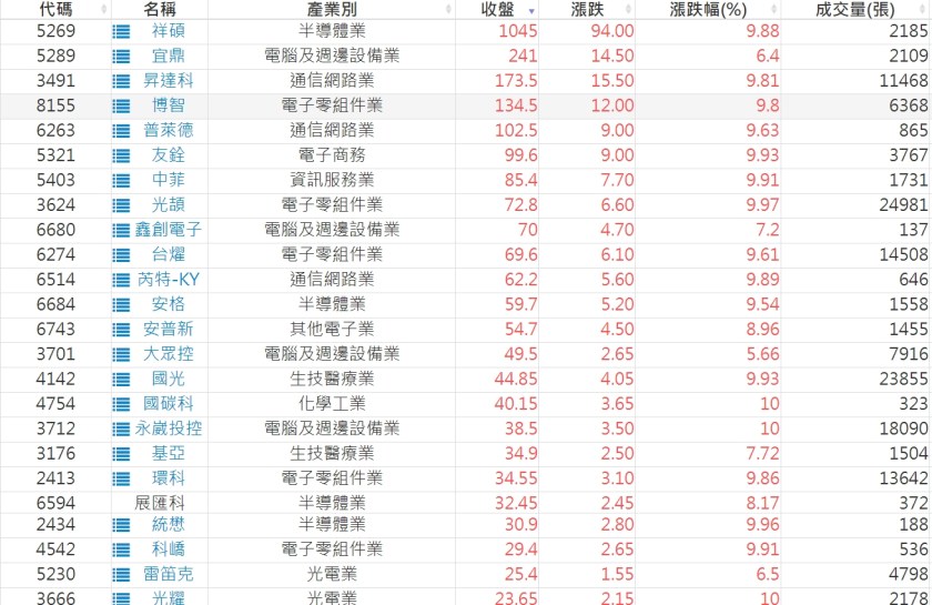 2023-0309股價創20日新高爆量上漲股 2023-03-10 股狗網小編 選股條件 發表留言 投資達人APP上線囉!!!『安裝APP』: 利用股狗選股的選股條件可以【挑選突破20日新高,爆量上漲起漲點股票】 1.股狗選股 https://www.stockdog.com.tw 2.選股條件: a.收盤價創20日新高 b.當日漲幅 > 2% C.成交量大於5日均量2倍 免責宣言 本網站文章所提供資訊僅供參考,並無任何推介買賣之意,投資人應自行承擔交易風險。 分享此文: 分享到 X(在新視窗中開啟) X 分享到 Facebook(在新視窗中開啟) Facebook 喜歡 正在載入...