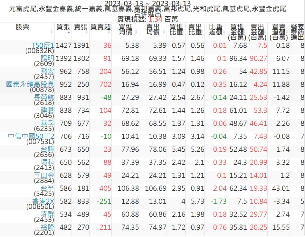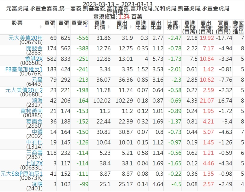 2023-0313主力買賣超個股 2023-03-14 股狗網小編 籌碼面每日資訊 發表留言 投資達人APP上線囉!!!『安裝APP』: 可參考下文 『如何查詢當沖、隔日沖分公司券商買賣』 主力當沖券商: 『元富虎尾』,『永豐金嘉義』,『統一嘉義』,『凱基嘉義』,『富邦嘉義』,『富邦虎尾』,『光和虎尾』,『凱基虎尾』,『永豐金虎尾』。 『當沖標的』 『買超股票』 『賣超股票』 免責宣言 本網站文章所提供資訊僅供參考,並無任何推介買賣之意,投資人應自行承擔交易風險。 分享此文: 分享到 X(在新視窗中開啟) X 分享到 Facebook(在新視窗中開啟) Facebook 喜歡 正在載入...