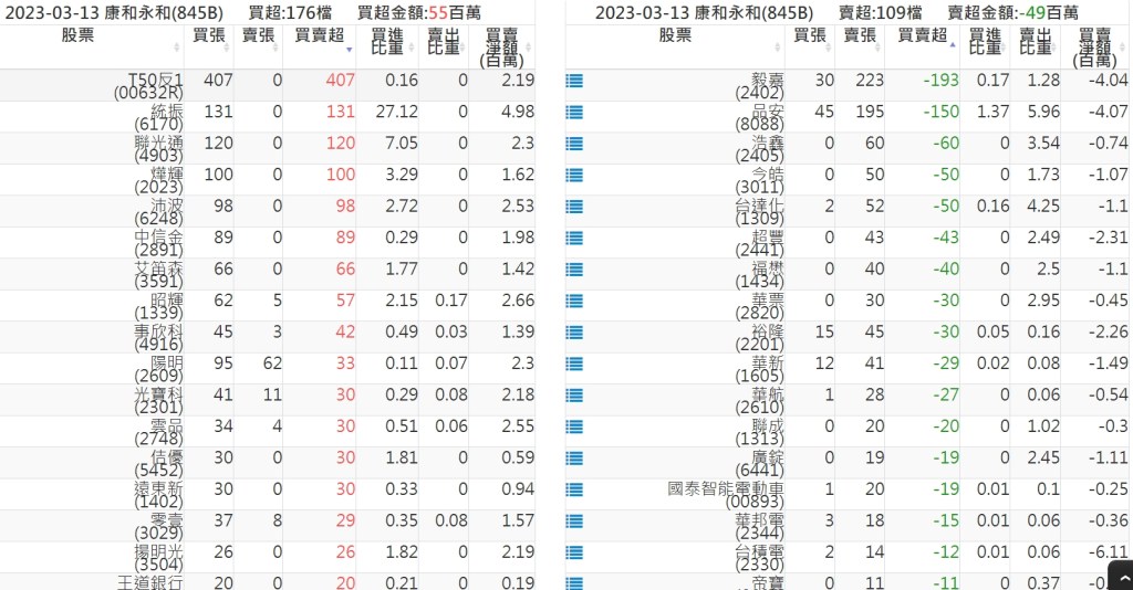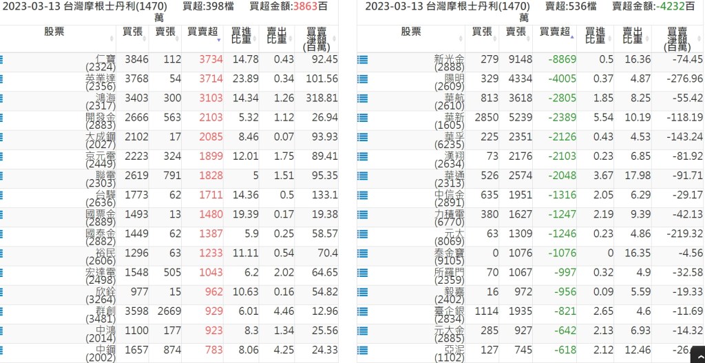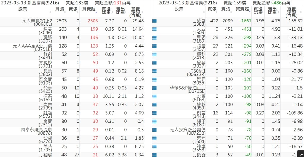 2023-0313關鍵券商買賣超 2023-03-14 股狗網小編 籌碼面每日資訊 發表留言 投資達人APP上線囉!!!『安裝APP』: 關鍵券商買賣超: 臺銀證券(1040): 台灣摩根士丹利(1470): 凱基台北(9268): 凱基信義(9216): 元大土城永寧(9875): 康和永和(845B) : 富邦建國(9658): 免責宣言 本網站文章所提供資訊僅供參考,並無任何推介買賣之意,投資人應自行承擔交易風險。 分享此文: 分享到 X(在新視窗中開啟) X 分享到 Facebook(在新視窗中開啟) Facebook 喜歡 正在載入...