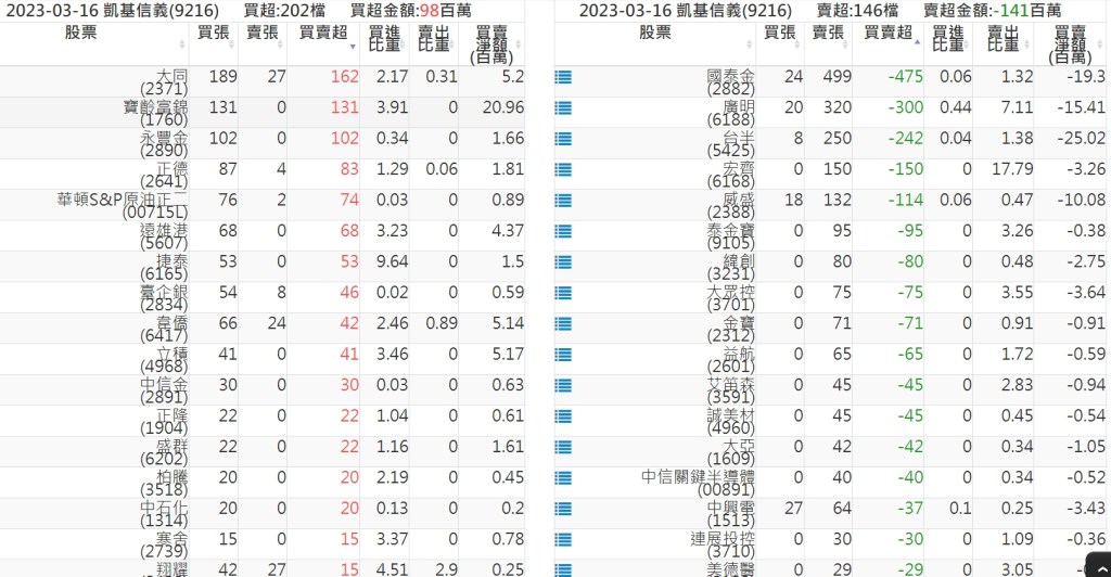 2023-0316關鍵券商買賣超 2023-03-17 股狗網小編 籌碼面每日資訊 發表留言 投資達人APP上線囉!!!『安裝APP』: 關鍵券商買賣超: 臺銀證券(1040): 台灣摩根士丹利(1470): 凱基台北(9268): 凱基信義(9216): 元大土城永寧(9875): 康和永和(845B) : 富邦建國(9658): 免責宣言 本網站文章所提供資訊僅供參考,並無任何推介買賣之意,投資人應自行承擔交易風險。 分享此文: 分享到 X(在新視窗中開啟) X 分享到 Facebook(在新視窗中開啟) Facebook 喜歡 正在載入...