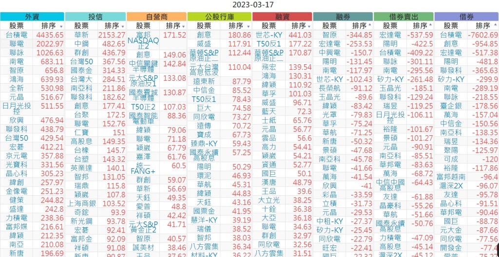 2023-0317上市【外資、投信】買賣超個股 2023-03-18 股狗網小編 投資誌-大盤 發表留言 投資達人APP上線囉!!!『安裝APP』 上市:【外資、投信】買超(依金額) (單位:百萬) 上市:【外資、投信】賣超(依金額) (單位:百萬) 上市:【外資、投信】買超(依張數) (單位:張數) 上市:【外資、投信】賣超(依張數) (單位:張數) 免責宣言 本網站文章所提供資訊僅供參考,並無任何推介買賣之意,投資人應自行承擔交易風險。 分享此文: 分享到 X(在新視窗中開啟) X 分享到 Facebook(在新視窗中開啟) Facebook 喜歡 正在載入...