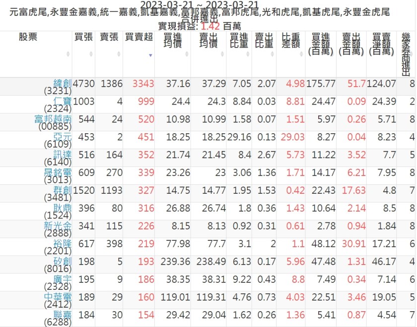 2023-0321主力買賣超個股 2023-03-22 股狗網小編 籌碼面每日資訊 發表留言 投資達人APP上線囉!!!『安裝APP』: 可參考下文 『如何查詢當沖、隔日沖分公司券商買賣』 主力當沖券商: 『元富虎尾』,『永豐金嘉義』,『統一嘉義』,『凱基嘉義』,『富邦嘉義』,『富邦虎尾』,『光和虎尾』,『凱基虎尾』,『永豐金虎尾』。 『當沖標的』 『買超股票』 『賣超股票』 免責宣言 本網站文章所提供資訊僅供參考,並無任何推介買賣之意,投資人應自行承擔交易風險。 分享此文: 分享到 X(在新視窗中開啟) X 分享到 Facebook(在新視窗中開啟) Facebook 喜歡 正在載入...