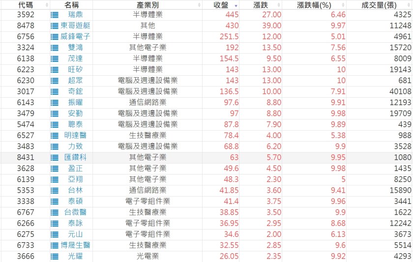2023-0322股價創20日新高爆量上漲股 2023-03-23 股狗網小編 選股條件 發表留言 投資達人APP上線囉!!!『安裝APP』: 利用股狗選股的選股條件可以【挑選突破20日新高,爆量上漲起漲點股票】 1.股狗選股 https://www.stockdog.com.tw 2.選股條件: a.收盤價創20日新高 b.當日漲幅 > 2% C.成交量大於5日均量2倍 免責宣言 本網站文章所提供資訊僅供參考,並無任何推介買賣之意,投資人應自行承擔交易風險。 分享此文: 按一下即可分享至 X(在新視窗中開啟) X 按一下以分享至 Facebook(在新視窗中開啟) Facebook 喜歡 正在載入...