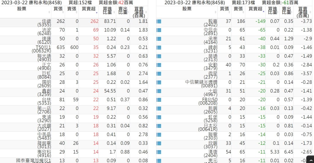 2023-0322關鍵券商買賣超 2023-03-23 股狗網小編 籌碼面每日資訊 發表留言 投資達人APP上線囉!!!『安裝APP』: 關鍵券商買賣超: 臺銀證券(1040): 台灣摩根士丹利(1470): 凱基台北(9268): 凱基信義(9216): 元大土城永寧(9875): 康和永和(845B) : 富邦建國(9658): 免責宣言 本網站文章所提供資訊僅供參考,並無任何推介買賣之意,投資人應自行承擔交易風險。 分享此文: 分享到 X(在新視窗中開啟) X 分享到 Facebook(在新視窗中開啟) Facebook 喜歡 正在載入...