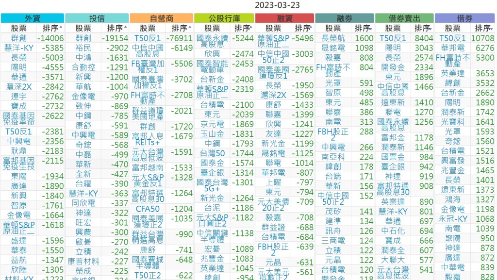 2023-0323上市【外資、投信】買賣超個股 2023-03-24 股狗網小編 投資誌-大盤 發表留言 投資達人APP上線囉!!!『安裝APP』 上市:【外資、投信】買超(依金額) (單位:百萬) 上市:【外資、投信】賣超(依金額) (單位:百萬) 上市:【外資、投信】買超(依張數) (單位:張數) 上市:【外資、投信】賣超(依張數) (單位:張數) 免責宣言 本網站文章所提供資訊僅供參考,並無任何推介買賣之意,投資人應自行承擔交易風險。 分享此文: 分享到 X(在新視窗中開啟) X 分享到 Facebook(在新視窗中開啟) Facebook 喜歡 正在載入...