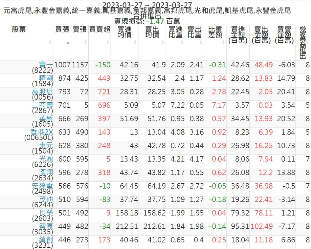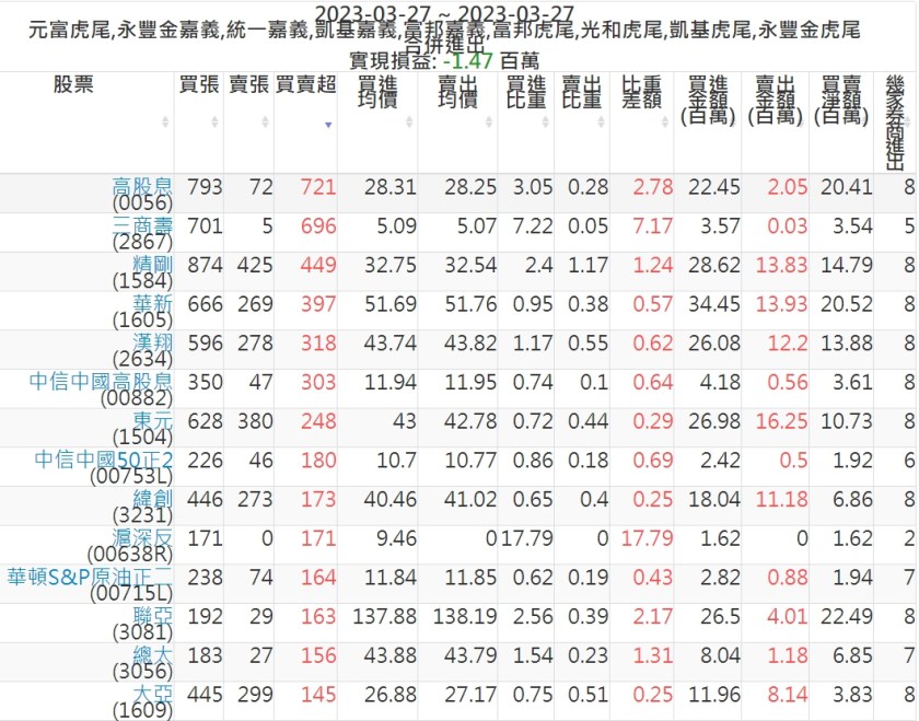 2023-0327主力買賣超個股 2023-03-28 股狗網小編 籌碼面每日資訊 發表留言 投資達人APP上線囉!!!『安裝APP』: 可參考下文 『如何查詢當沖、隔日沖分公司券商買賣』 主力當沖券商: 『元富虎尾』,『永豐金嘉義』,『統一嘉義』,『凱基嘉義』,『富邦嘉義』,『富邦虎尾』,『光和虎尾』,『凱基虎尾』,『永豐金虎尾』。 『當沖標的』 『買超股票』 『賣超股票』 免責宣言 本網站文章所提供資訊僅供參考,並無任何推介買賣之意,投資人應自行承擔交易風險。 分享此文: 分享到 X(在新視窗中開啟) X 分享到 Facebook(在新視窗中開啟) Facebook 喜歡 正在載入...