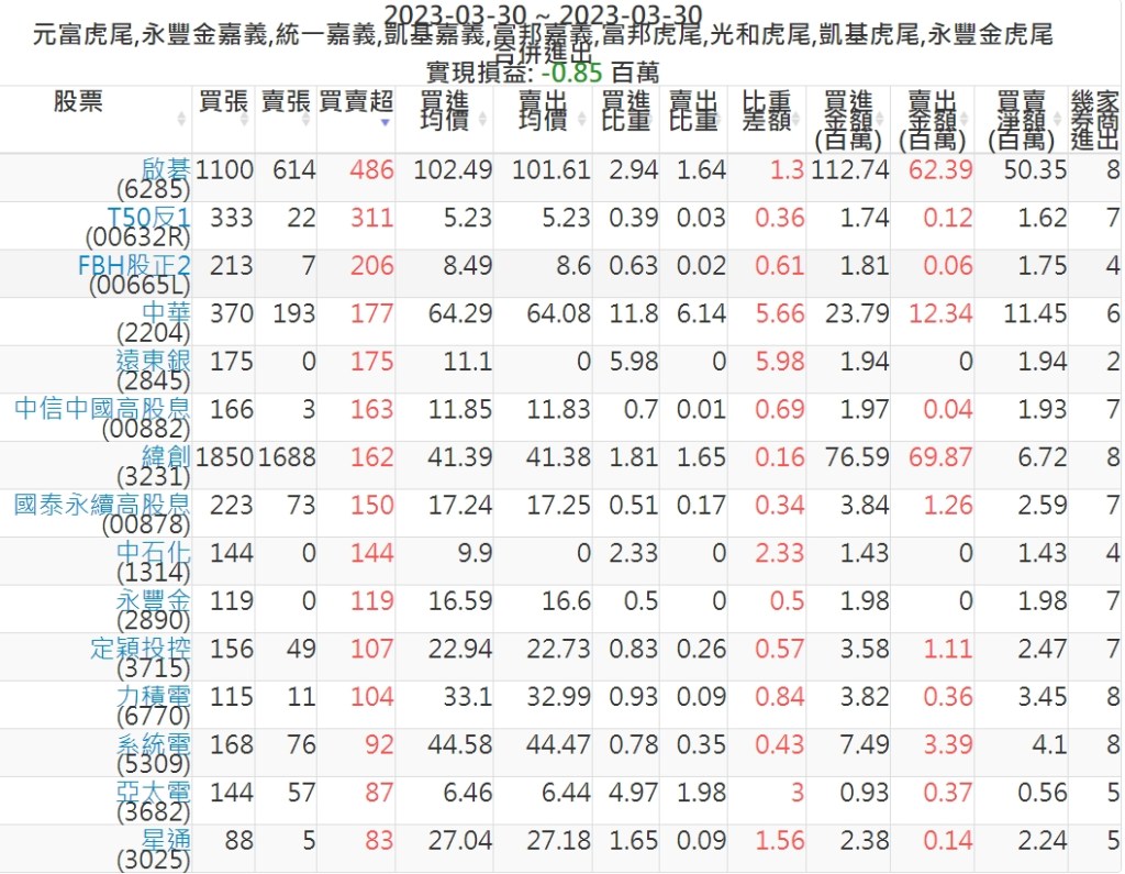 2023-0330主力買賣超個股 2023-03-31 股狗網小編 籌碼面每日資訊 發表留言 投資達人APP上線囉!!!『安裝APP』: 可參考下文 『如何查詢當沖、隔日沖分公司券商買賣』 主力當沖券商: 『元富虎尾』,『永豐金嘉義』,『統一嘉義』,『凱基嘉義』,『富邦嘉義』,『富邦虎尾』,『光和虎尾』,『凱基虎尾』,『永豐金虎尾』。 『當沖標的』 『買超股票』 『賣超股票』 免責宣言 本網站文章所提供資訊僅供參考,並無任何推介買賣之意,投資人應自行承擔交易風險。 分享此文: 分享到 X(在新視窗中開啟) X 分享到 Facebook(在新視窗中開啟) Facebook 喜歡 正在載入...