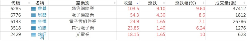 2023-0330股價創20日新高爆量上漲股 2023-03-31 股狗網小編 選股條件 發表留言 投資達人APP上線囉!!!『安裝APP』: 利用股狗選股的選股條件可以【挑選突破20日新高,爆量上漲起漲點股票】 1.股狗選股 https://www.stockdog.com.tw 2.選股條件: a.收盤價創20日新高 b.當日漲幅 > 2% C.成交量大於5日均量2倍 免責宣言 本網站文章所提供資訊僅供參考,並無任何推介買賣之意,投資人應自行承擔交易風險。 分享此文: 分享到 X(在新視窗中開啟) X 分享到 Facebook(在新視窗中開啟) Facebook 喜歡 正在載入...