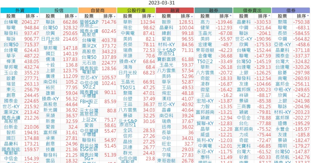 2023-0331上市【外資、投信】買賣超個股 2023-04-01 股狗網小編 投資誌-大盤 發表留言 投資達人APP上線囉!!!『安裝APP』 上市:【外資、投信】買超(依金額) (單位:百萬) 上市:【外資、投信】賣超(依金額) (單位:百萬) 上市:【外資、投信】買超(依張數) (單位:張數) 上市:【外資、投信】賣超(依張數) (單位:張數) 免責宣言 本網站文章所提供資訊僅供參考,並無任何推介買賣之意,投資人應自行承擔交易風險。 分享此文: 分享到 X(在新視窗中開啟) X 分享到 Facebook(在新視窗中開啟) Facebook 喜歡 正在載入...