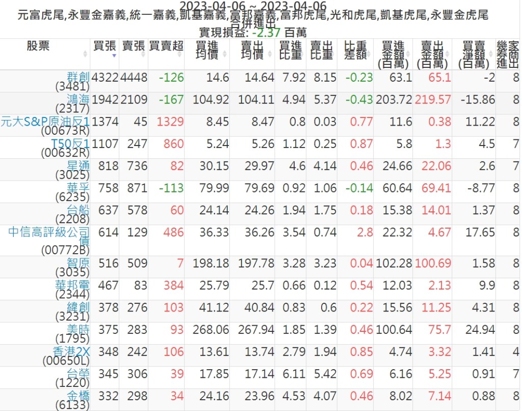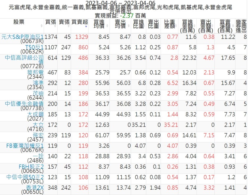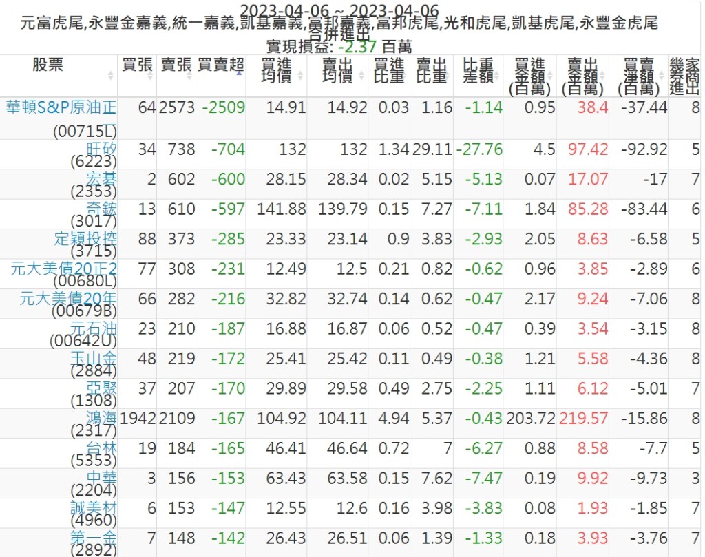 2023-0406主力買賣超個股 2023-04-07 股狗網小編 籌碼面每日資訊 發表留言 投資達人APP上線囉!!!『安裝APP』: 可參考下文 『如何查詢當沖、隔日沖分公司券商買賣』 主力當沖券商: 『元富虎尾』,『永豐金嘉義』,『統一嘉義』,『凱基嘉義』,『富邦嘉義』,『富邦虎尾』,『光和虎尾』,『凱基虎尾』,『永豐金虎尾』。 『當沖標的』 『買超股票』 『賣超股票』 免責宣言 本網站文章所提供資訊僅供參考,並無任何推介買賣之意,投資人應自行承擔交易風險。 分享此文: 分享到 X(在新視窗中開啟) X 分享到 Facebook(在新視窗中開啟) Facebook 喜歡 正在載入...