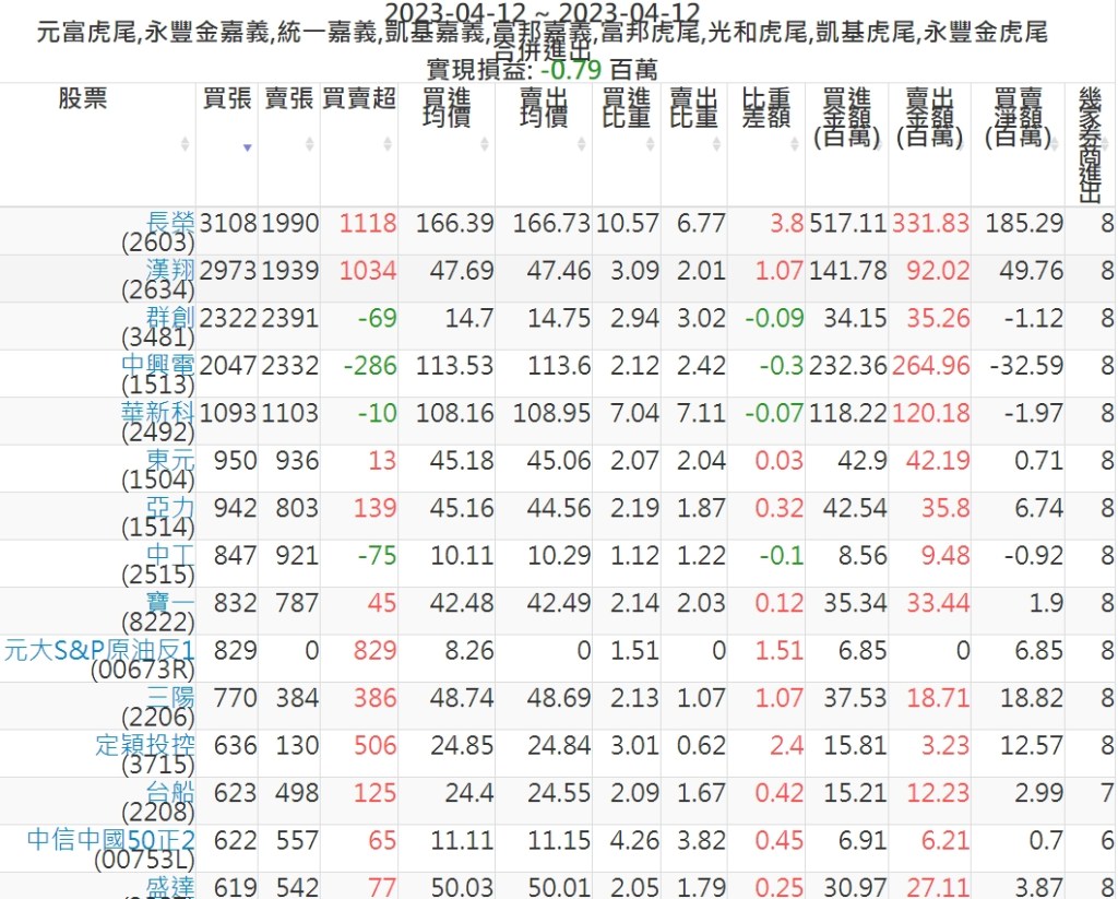2023-0412主力買賣超個股 2023-04-13 股狗網小編 籌碼面每日資訊 發表留言 投資達人APP上線囉!!!『安裝APP』: 可參考下文 『如何查詢當沖、隔日沖分公司券商買賣』 主力當沖券商: 『元富虎尾』,『永豐金嘉義』,『統一嘉義』,『凱基嘉義』,『富邦嘉義』,『富邦虎尾』,『光和虎尾』,『凱基虎尾』,『永豐金虎尾』。 『當沖標的』 『買超股票』 『賣超股票』 免責宣言 本網站文章所提供資訊僅供參考,並無任何推介買賣之意,投資人應自行承擔交易風險。 分享此文: 按一下即可分享至 X(在新視窗中開啟) X 按一下以分享至 Facebook(在新視窗中開啟) Facebook 喜歡 正在載入...