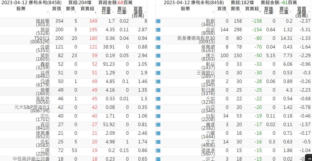 2023-0412關鍵券商買賣超 2023-04-13 股狗網小編 籌碼面每日資訊 發表留言 投資達人APP上線囉!!!『安裝APP』: 關鍵券商買賣超: 臺銀證券(1040): 台灣摩根士丹利(1470): 凱基台北(9268): 凱基信義(9216): 元大土城永寧(9875): 康和永和(845B) : 富邦建國(9658): 免責宣言 本網站文章所提供資訊僅供參考,並無任何推介買賣之意,投資人應自行承擔交易風險。 分享此文: 按一下即可分享至 X(在新視窗中開啟) X 按一下以分享至 Facebook(在新視窗中開啟) Facebook 喜歡 正在載入...
