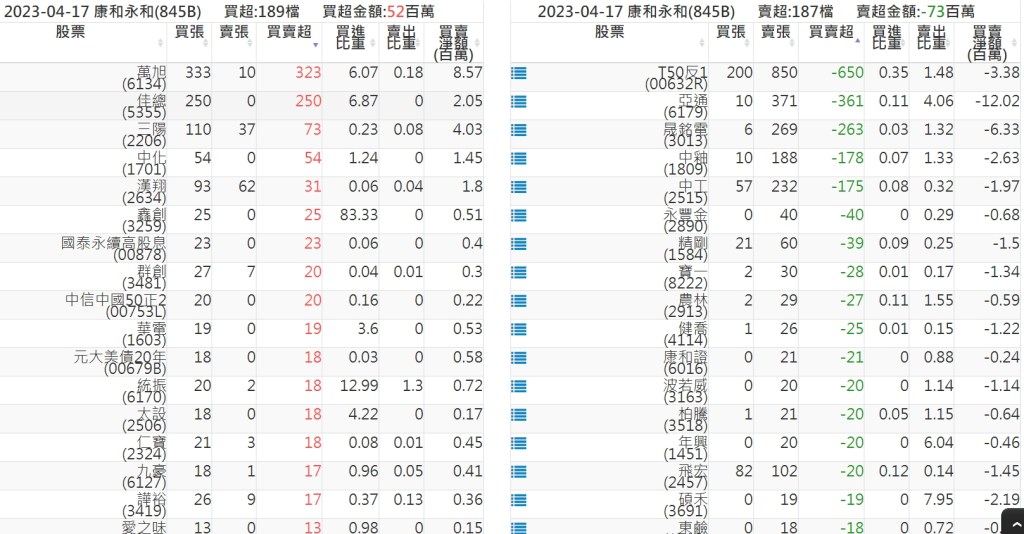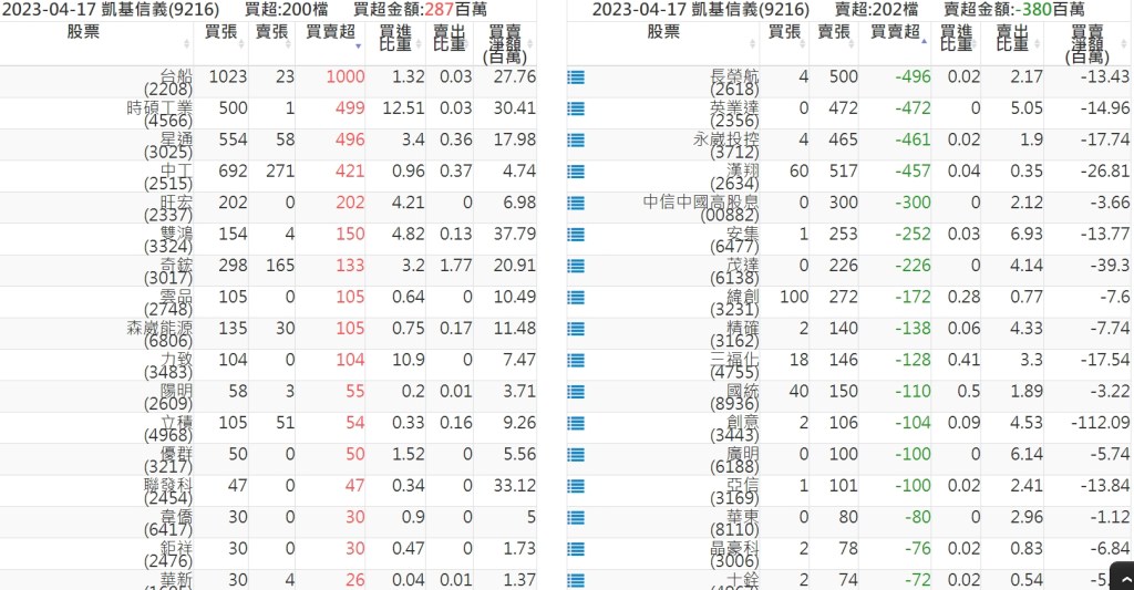 2023-0417關鍵券商買賣超 2023-04-18 股狗網小編 籌碼面每日資訊 發表留言 投資達人APP上線囉!!!『安裝APP』: 關鍵券商買賣超: 臺銀證券(1040): 台灣摩根士丹利(1470): 凱基台北(9268): 凱基信義(9216): 元大土城永寧(9875): 康和永和(845B) : 富邦建國(9658): 免責宣言 本網站文章所提供資訊僅供參考,並無任何推介買賣之意,投資人應自行承擔交易風險。 分享此文: 分享到 X(在新視窗中開啟) X 分享到 Facebook(在新視窗中開啟) Facebook 喜歡 正在載入...
