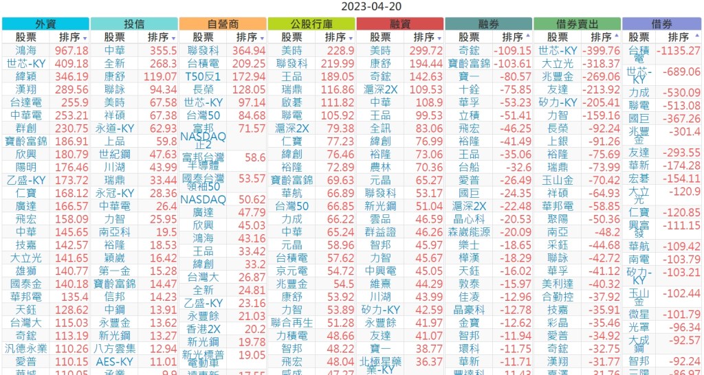 2023-0420上市【外資、投信】買賣超個股 2023-04-21 股狗網小編 投資誌-大盤 發表留言 投資達人APP上線囉!!!『安裝APP』 上市:【外資、投信】買超(依金額) (單位:百萬) 上市:【外資、投信】賣超(依金額) (單位:百萬) 上市:【外資、投信】買超(依張數) (單位:張數) 上市:【外資、投信】賣超(依張數) (單位:張數) 免責宣言 本網站文章所提供資訊僅供參考,並無任何推介買賣之意,投資人應自行承擔交易風險。 分享此文: 分享到 X(在新視窗中開啟) X 分享到 Facebook(在新視窗中開啟) Facebook 喜歡 正在載入...