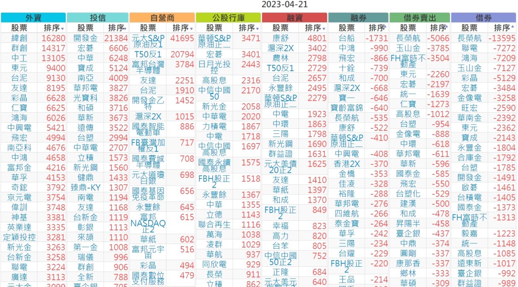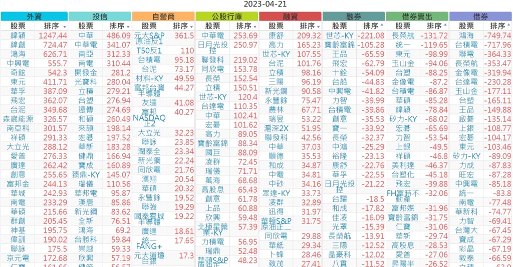 2023-0421上市【外資、投信】買賣超個股 2023-04-22 股狗網小編 投資誌-大盤 發表留言 投資達人APP上線囉!!!『安裝APP』 上市:【外資、投信】買超(依金額) (單位:百萬) 上市:【外資、投信】賣超(依金額) (單位:百萬) 上市:【外資、投信】買超(依張數) (單位:張數) 上市:【外資、投信】賣超(依張數) (單位:張數) 免責宣言 本網站文章所提供資訊僅供參考,並無任何推介買賣之意,投資人應自行承擔交易風險。 分享此文: 分享到 X(在新視窗中開啟) X 分享到 Facebook(在新視窗中開啟) Facebook 喜歡 正在載入...