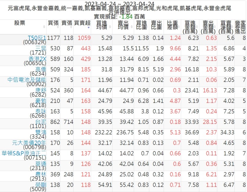 2023-0424主力買賣超個股 2023-04-25 股狗網小編 籌碼面每日資訊 發表留言 投資達人APP上線囉!!!『安裝APP』: 可參考下文 『如何查詢當沖、隔日沖分公司券商買賣』 主力當沖券商: 『元富虎尾』,『永豐金嘉義』,『統一嘉義』,『凱基嘉義』,『富邦嘉義』,『富邦虎尾』,『光和虎尾』,『凱基虎尾』,『永豐金虎尾』。 『當沖標的』 『買超股票』 『賣超股票』 免責宣言 本網站文章所提供資訊僅供參考,並無任何推介買賣之意,投資人應自行承擔交易風險。 分享此文: 分享到 X(在新視窗中開啟) X 分享到 Facebook(在新視窗中開啟) Facebook 喜歡 正在載入...