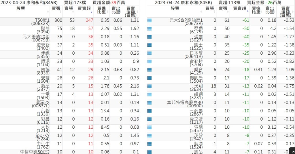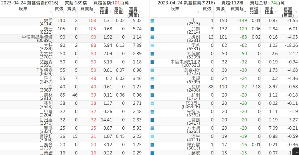 2023-0424關鍵券商買賣超 2023-04-25 股狗網小編 籌碼面每日資訊 發表留言 投資達人APP上線囉!!!『安裝APP』: 關鍵券商買賣超: 臺銀證券(1040): 台灣摩根士丹利(1470): 凱基台北(9268): 凱基信義(9216): 元大土城永寧(9875): 康和永和(845B) : 富邦建國(9658): 免責宣言 本網站文章所提供資訊僅供參考,並無任何推介買賣之意,投資人應自行承擔交易風險。 分享此文: 分享到 X(在新視窗中開啟) X 分享到 Facebook(在新視窗中開啟) Facebook 喜歡 正在載入...
