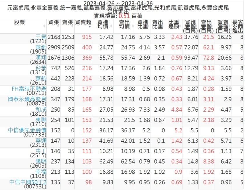 2023-0426主力買賣超個股 2023-04-27 股狗網小編 籌碼面每日資訊 發表留言 投資達人APP上線囉!!!『安裝APP』: 可參考下文 『如何查詢當沖、隔日沖分公司券商買賣』 主力當沖券商: 『元富虎尾』,『永豐金嘉義』,『統一嘉義』,『凱基嘉義』,『富邦嘉義』,『富邦虎尾』,『光和虎尾』,『凱基虎尾』,『永豐金虎尾』。 『當沖標的』 『買超股票』 『賣超股票』 免責宣言 本網站文章所提供資訊僅供參考,並無任何推介買賣之意,投資人應自行承擔交易風險。 分享此文: 分享到 X(在新視窗中開啟) X 分享到 Facebook(在新視窗中開啟) Facebook 喜歡 正在載入...