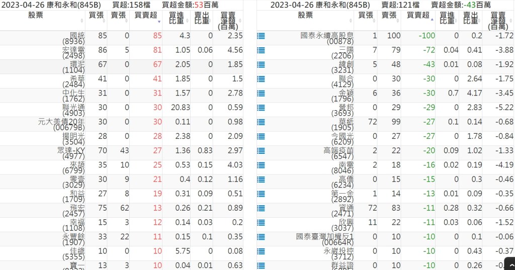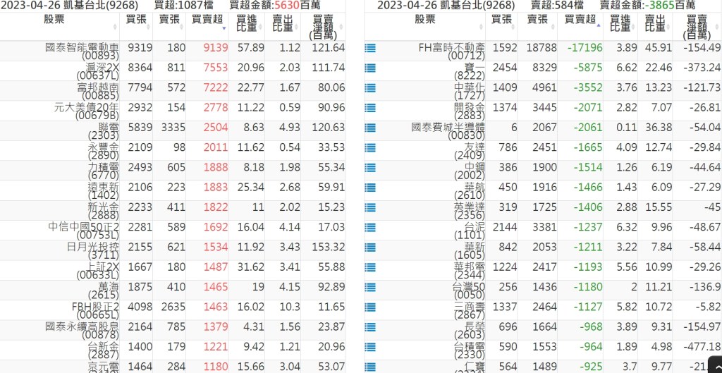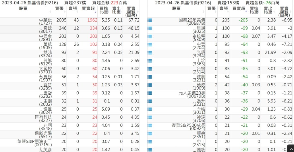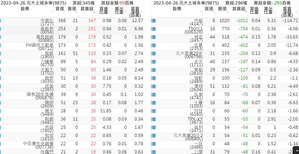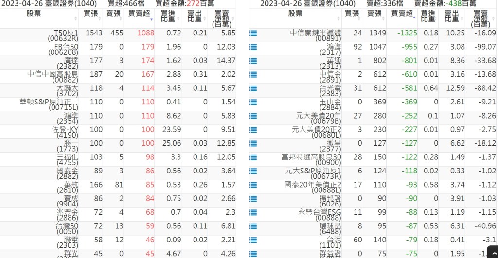 2023-0426關鍵券商買賣超 2023-04-27 股狗網小編 籌碼面每日資訊 發表留言 投資達人APP上線囉!!!『安裝APP』: 關鍵券商買賣超: 臺銀證券(1040): 台灣摩根士丹利(1470): 凱基台北(9268): 凱基信義(9216): 元大土城永寧(9875): 康和永和(845B) : 富邦建國(9658): 免責宣言 本網站文章所提供資訊僅供參考,並無任何推介買賣之意,投資人應自行承擔交易風險。 分享此文: 分享到 X(在新視窗中開啟) X 分享到 Facebook(在新視窗中開啟) Facebook 喜歡 正在載入...