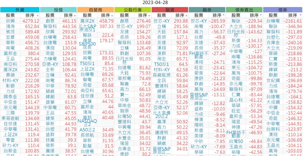 2023-0428上市【外資、投信】買賣超個股 2023-04-29 股狗網小編 投資誌-大盤 發表留言 投資達人APP上線囉!!!『安裝APP』 上市:【外資、投信】買超(依金額) (單位:百萬) 上市:【外資、投信】賣超(依金額) (單位:百萬) 上市:【外資、投信】買超(依張數) (單位:張數) 上市:【外資、投信】賣超(依張數) (單位:張數) 免責宣言 本網站文章所提供資訊僅供參考,並無任何推介買賣之意,投資人應自行承擔交易風險。 分享此文: 分享到 X(在新視窗中開啟) X 分享到 Facebook(在新視窗中開啟) Facebook 喜歡 正在載入...