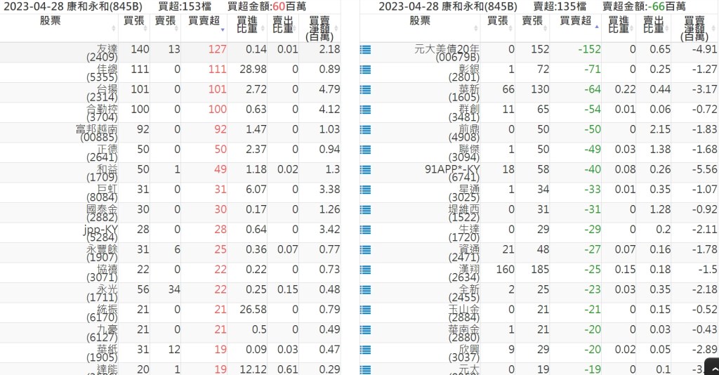 2023-0428關鍵券商買賣超 2023-04-29 股狗網小編 籌碼面每日資訊 發表留言 投資達人APP上線囉!!!『安裝APP』: 關鍵券商買賣超: 臺銀證券(1040): 台灣摩根士丹利(1470): 凱基台北(9268): 凱基信義(9216): 元大土城永寧(9875): 康和永和(845B) : 富邦建國(9658): 免責宣言 本網站文章所提供資訊僅供參考,並無任何推介買賣之意,投資人應自行承擔交易風險。 分享此文: 分享到 X(在新視窗中開啟) X 分享到 Facebook(在新視窗中開啟) Facebook 喜歡 正在載入...