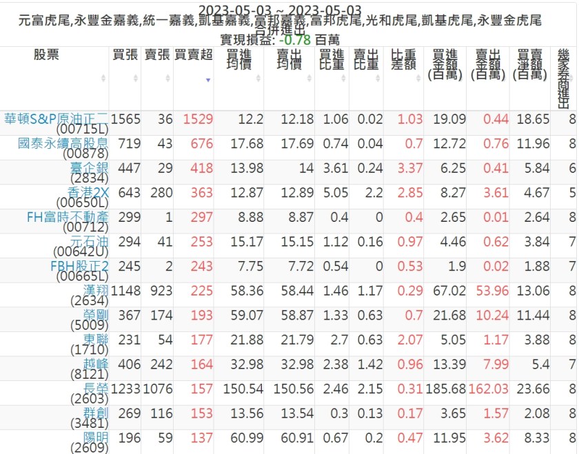 2023-0503主力買賣超個股 2023-05-04 股狗網小編 籌碼面每日資訊 發表留言 投資達人APP上線囉!!!『安裝APP』: 可參考下文 『如何查詢當沖、隔日沖分公司券商買賣』 主力當沖券商: 『元富虎尾』,『永豐金嘉義』,『統一嘉義』,『凱基嘉義』,『富邦嘉義』,『富邦虎尾』,『光和虎尾』,『凱基虎尾』,『永豐金虎尾』。 『當沖標的』 『買超股票』 『賣超股票』 免責宣言 本網站文章所提供資訊僅供參考,並無任何推介買賣之意,投資人應自行承擔交易風險。 分享此文: 分享到 X(在新視窗中開啟) X 分享到 Facebook(在新視窗中開啟) Facebook 喜歡 正在載入...