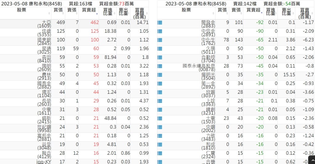 2023-0508關鍵券商買賣超 2023-05-09 股狗網小編 籌碼面每日資訊 發表留言 投資達人APP上線囉!!!『安裝APP』: 關鍵券商買賣超: 臺銀證券(1040): 台灣摩根士丹利(1470): 凱基台北(9268): 凱基信義(9216): 元大土城永寧(9875): 康和永和(845B) : 富邦建國(9658): 免責宣言 本網站文章所提供資訊僅供參考,並無任何推介買賣之意,投資人應自行承擔交易風險。 分享此文: 分享到 X(在新視窗中開啟) X 分享到 Facebook(在新視窗中開啟) Facebook 喜歡 正在載入...