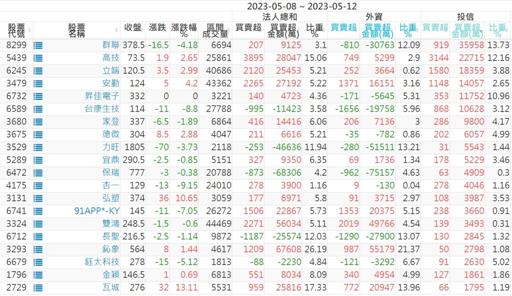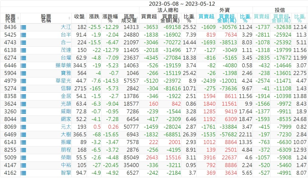 2023/05/08~2023/05/12近5日【投信】買賣超個股 2023-05-14 股狗網小編 投資誌-大盤 發表留言 投資達人APP上線囉!!!『安裝APP』: 【上市投信買超個股】(以金額排行,單位:萬) 【上市投信賣超個股】(以金額排行,單位:萬) 【上櫃投信買超個股】(以金額排行,單位:萬) 【上櫃投信賣超個股】(以金額排行,單位:萬) 免責宣言 本網站文章所提供資訊僅供參考,並無任何推介買賣之意,投資人應自行承擔交易風險。 分享此文: 分享到 X(在新視窗中開啟) X 分享到 Facebook(在新視窗中開啟) Facebook 喜歡 正在載入...