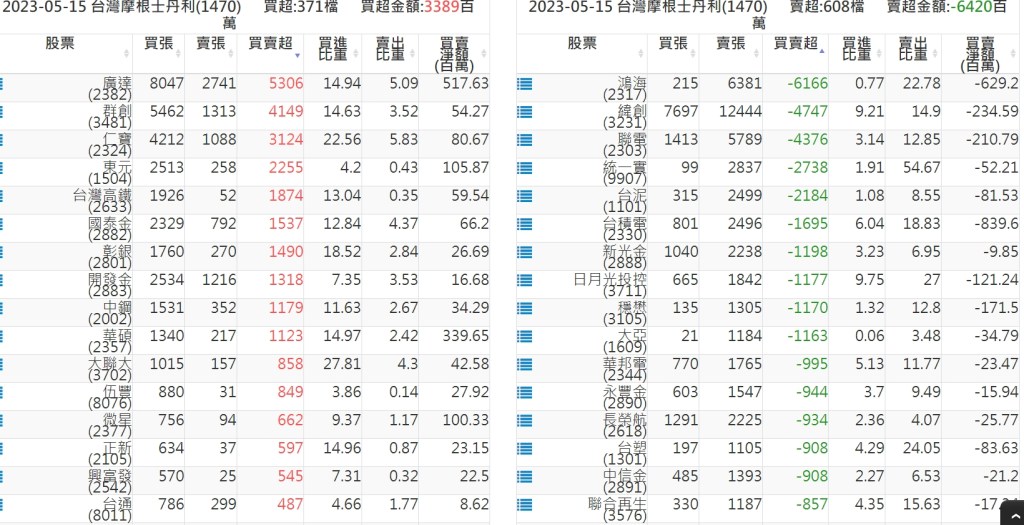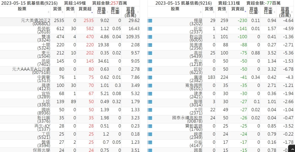 2023-0515關鍵券商買賣超 2023-05-16 股狗網小編 籌碼面每日資訊 發表留言 投資達人APP上線囉!!!『安裝APP』: 關鍵券商買賣超: 臺銀證券(1040): 台灣摩根士丹利(1470): 凱基台北(9268): 凱基信義(9216): 元大土城永寧(9875): 康和永和(845B) : 富邦建國(9658): 免責宣言 本網站文章所提供資訊僅供參考,並無任何推介買賣之意,投資人應自行承擔交易風險。 分享此文: 分享到 X(在新視窗中開啟) X 分享到 Facebook(在新視窗中開啟) Facebook 喜歡 正在載入...