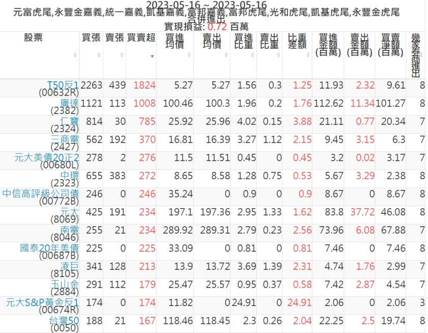 2023-0516主力買賣超個股 2023-05-17 股狗網小編 籌碼面每日資訊 發表留言 投資達人APP上線囉!!!『安裝APP』: 可參考下文 『如何查詢當沖、隔日沖分公司券商買賣』 主力當沖券商: 『元富虎尾』,『永豐金嘉義』,『統一嘉義』,『凱基嘉義』,『富邦嘉義』,『富邦虎尾』,『光和虎尾』,『凱基虎尾』,『永豐金虎尾』。 『當沖標的』 『買超股票』 『賣超股票』 免責宣言 本網站文章所提供資訊僅供參考,並無任何推介買賣之意,投資人應自行承擔交易風險。 分享此文: 分享到 X(在新視窗中開啟) X 分享到 Facebook(在新視窗中開啟) Facebook 喜歡 正在載入...