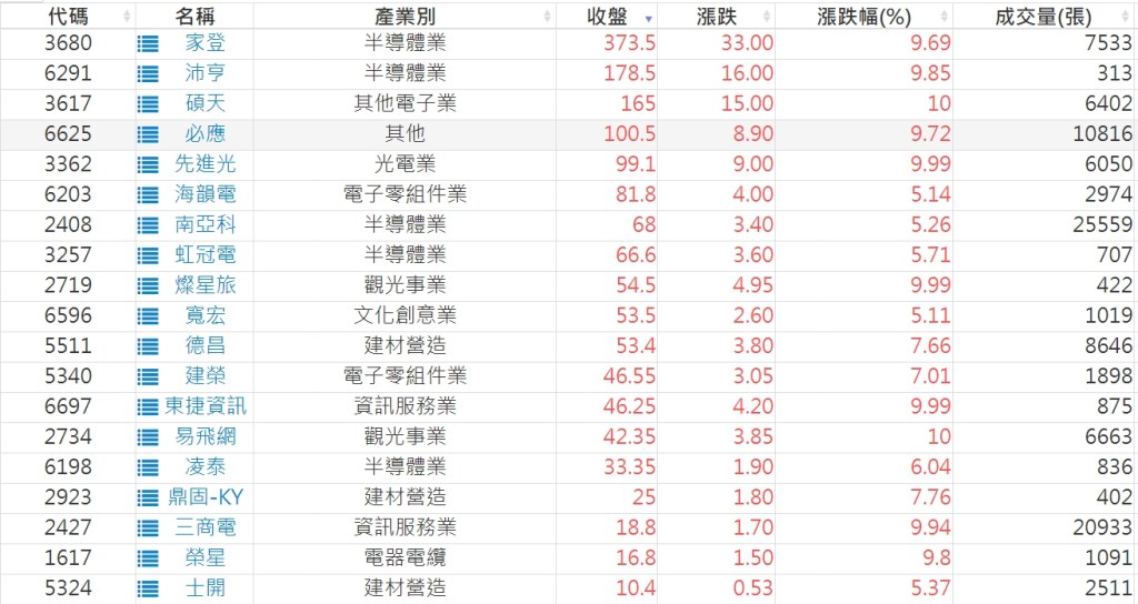 2023-0517股價創20日新高爆量上漲股 2023-05-18 股狗網小編 選股條件 發表留言 投資達人APP上線囉!!!『安裝APP』: 利用股狗選股的選股條件可以【挑選突破20日新高,爆量上漲起漲點股票】 1.股狗選股 https://www.stockdog.com.tw 2.選股條件: a.收盤價創20日新高 b.當日漲幅 > 2% C.成交量大於5日均量2倍 免責宣言 本網站文章所提供資訊僅供參考,並無任何推介買賣之意,投資人應自行承擔交易風險。 分享此文: 分享到 X(在新視窗中開啟) X 分享到 Facebook(在新視窗中開啟) Facebook 喜歡 正在載入...