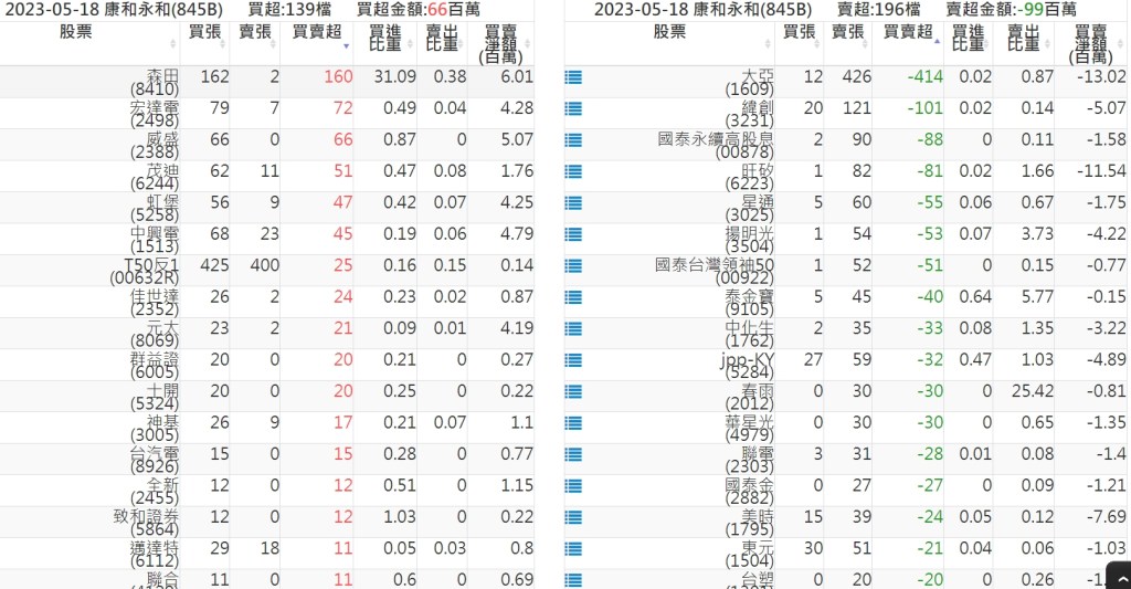 2023-0518關鍵券商買賣超 2023-05-19 股狗網小編 籌碼面每日資訊 發表留言 投資達人APP上線囉!!!『安裝APP』: 關鍵券商買賣超: 臺銀證券(1040): 台灣摩根士丹利(1470): 凱基台北(9268): 凱基信義(9216): 元大土城永寧(9875): 康和永和(845B) : 富邦建國(9658): 免責宣言 本網站文章所提供資訊僅供參考,並無任何推介買賣之意,投資人應自行承擔交易風險。 分享此文: 分享到 X(在新視窗中開啟) X 分享到 Facebook(在新視窗中開啟) Facebook 喜歡 正在載入...