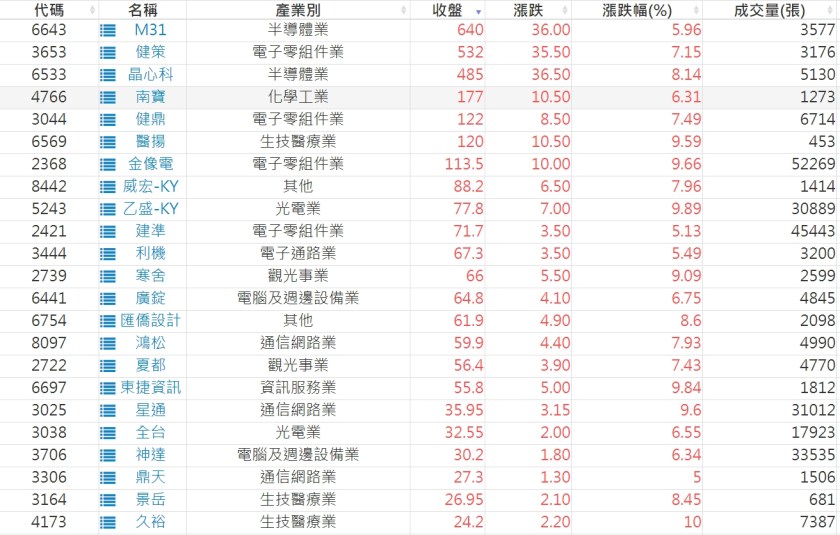 2023-0519股價創20日新高爆量上漲股 2023-05-20 股狗網小編 選股條件 發表留言 投資達人APP上線囉!!!『安裝APP』: 利用股狗選股的選股條件可以【挑選突破20日新高,爆量上漲起漲點股票】 1.股狗選股 https://www.stockdog.com.tw 2.選股條件: a.收盤價創20日新高 b.當日漲幅 > 2% C.成交量大於5日均量2倍 免責宣言 本網站文章所提供資訊僅供參考,並無任何推介買賣之意,投資人應自行承擔交易風險。 分享此文: 分享到 X(在新視窗中開啟) X 分享到 Facebook(在新視窗中開啟) Facebook 喜歡 正在載入...