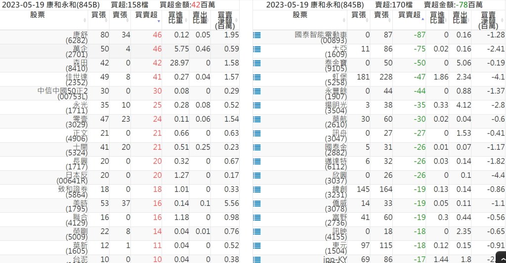 2023-0519關鍵券商買賣超 2023-05-20 股狗網小編 籌碼面每日資訊 發表留言 投資達人APP上線囉!!!『安裝APP』: 關鍵券商買賣超: 臺銀證券(1040): 台灣摩根士丹利(1470): 凱基台北(9268): 凱基信義(9216): 元大土城永寧(9875): 康和永和(845B) : 富邦建國(9658): 免責宣言 本網站文章所提供資訊僅供參考,並無任何推介買賣之意,投資人應自行承擔交易風險。 分享此文: 分享到 X(在新視窗中開啟) X 分享到 Facebook(在新視窗中開啟) Facebook 喜歡 正在載入...