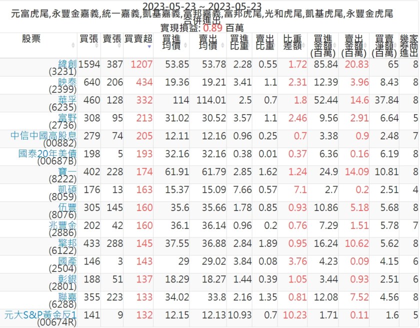 2023-0523主力買賣超個股 2023-05-24 股狗網小編 籌碼面每日資訊 發表留言 投資達人APP上線囉!!!『安裝APP』: 可參考下文 『如何查詢當沖、隔日沖分公司券商買賣』 主力當沖券商: 『元富虎尾』,『永豐金嘉義』,『統一嘉義』,『凱基嘉義』,『富邦嘉義』,『富邦虎尾』,『光和虎尾』,『凱基虎尾』,『永豐金虎尾』。 『當沖標的』 『買超股票』 『賣超股票』 免責宣言 本網站文章所提供資訊僅供參考,並無任何推介買賣之意,投資人應自行承擔交易風險。 分享此文: 分享到 X(在新視窗中開啟) X 分享到 Facebook(在新視窗中開啟) Facebook 喜歡 正在載入...