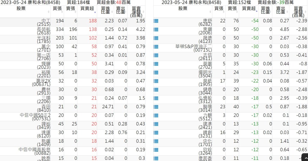2023-0524關鍵券商買賣超 2023-05-25 股狗網小編 籌碼面每日資訊 發表留言 投資達人APP上線囉!!!『安裝APP』: 關鍵券商買賣超: 臺銀證券(1040): 台灣摩根士丹利(1470): 凱基台北(9268): 凱基信義(9216): 元大土城永寧(9875): 康和永和(845B) : 富邦建國(9658): 免責宣言 本網站文章所提供資訊僅供參考,並無任何推介買賣之意,投資人應自行承擔交易風險。 分享此文: 分享到 X(在新視窗中開啟) X 分享到 Facebook(在新視窗中開啟) Facebook 喜歡 正在載入...