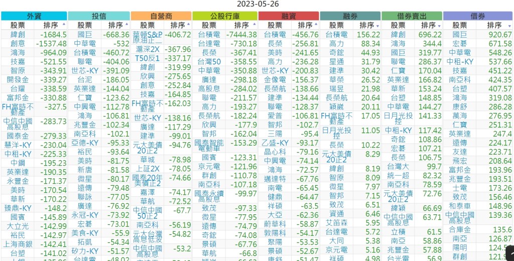 2023-0526上市【外資、投信】買賣超個股 2023-05-27 股狗網小編 投資誌-大盤 發表留言 投資達人APP上線囉!!!『安裝APP』 上市:【外資、投信】買超(依金額) (單位:百萬) 上市:【外資、投信】賣超(依金額) (單位:百萬) 上市:【外資、投信】買超(依張數) (單位:張數) 上市:【外資、投信】賣超(依張數) (單位:張數) 免責宣言 本網站文章所提供資訊僅供參考,並無任何推介買賣之意,投資人應自行承擔交易風險。 分享此文: 分享到 X(在新視窗中開啟) X 分享到 Facebook(在新視窗中開啟) Facebook 喜歡 正在載入...