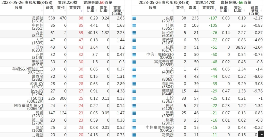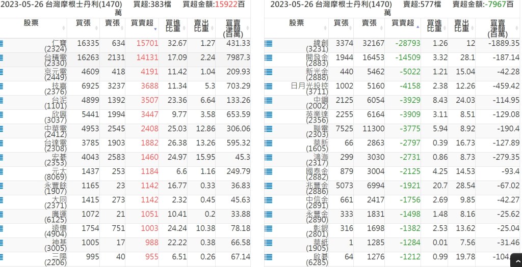 2023-0526關鍵券商買賣超 2023-05-27 股狗網小編 籌碼面每日資訊 發表留言 投資達人APP上線囉!!!『安裝APP』: 關鍵券商買賣超: 臺銀證券(1040): 台灣摩根士丹利(1470): 凱基台北(9268): 凱基信義(9216): 元大土城永寧(9875): 康和永和(845B) : 富邦建國(9658): 免責宣言 本網站文章所提供資訊僅供參考,並無任何推介買賣之意,投資人應自行承擔交易風險。 分享此文: 分享到 X(在新視窗中開啟) X 分享到 Facebook(在新視窗中開啟) Facebook 喜歡 正在載入...