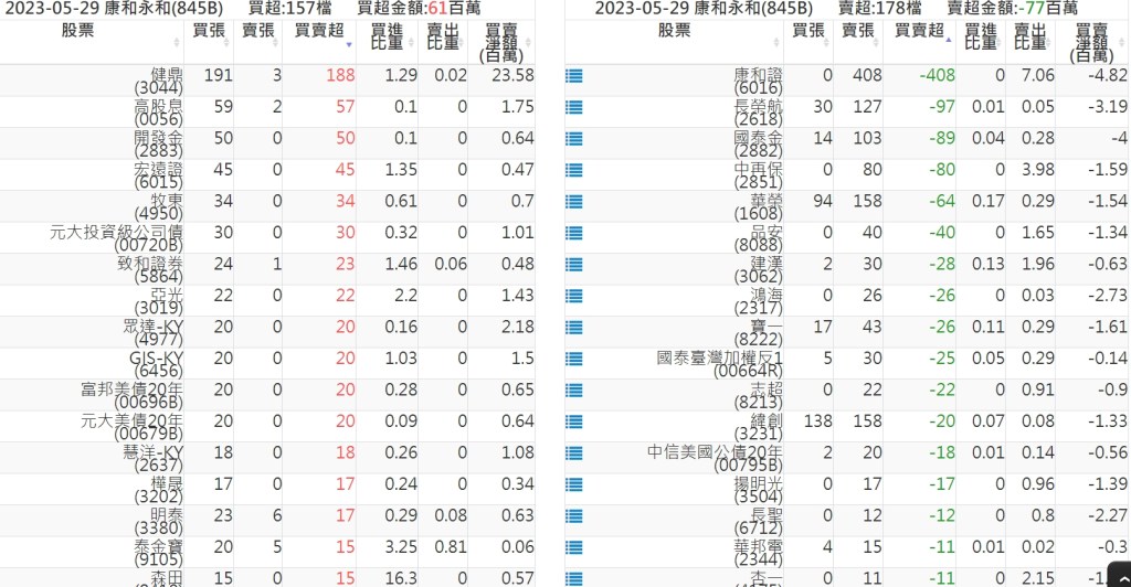 2023-0529關鍵券商買賣超 2023-05-30 股狗網小編 籌碼面每日資訊 發表留言 投資達人APP上線囉!!!『安裝APP』: 關鍵券商買賣超: 臺銀證券(1040): 台灣摩根士丹利(1470): 凱基台北(9268): 凱基信義(9216): 元大土城永寧(9875): 康和永和(845B) : 富邦建國(9658): 免責宣言 本網站文章所提供資訊僅供參考,並無任何推介買賣之意,投資人應自行承擔交易風險。 分享此文: 按一下即可分享至 X(在新視窗中開啟) X 按一下以分享至 Facebook(在新視窗中開啟) Facebook 喜歡 正在載入...