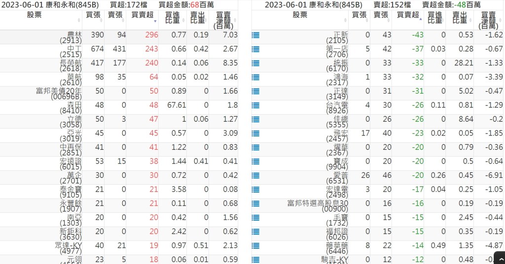 2023-0601關鍵券商買賣超 2023-06-02 股狗網小編 籌碼面每日資訊 發表留言 投資達人APP上線囉!!!『安裝APP』: 關鍵券商買賣超: 臺銀證券(1040): 台灣摩根士丹利(1470): 凱基台北(9268): 凱基信義(9216): 元大土城永寧(9875): 康和永和(845B) : 富邦建國(9658): 免責宣言 本網站文章所提供資訊僅供參考,並無任何推介買賣之意,投資人應自行承擔交易風險。 分享此文: 按一下即可分享至 X(在新視窗中開啟) X 按一下以分享至 Facebook(在新視窗中開啟) Facebook 喜歡 正在載入...