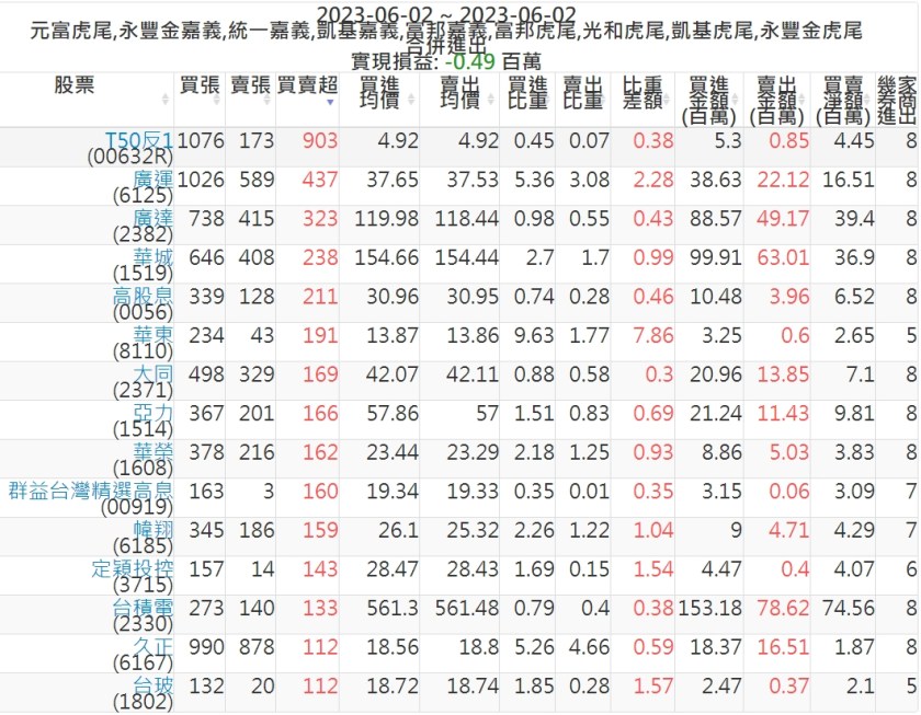 2023-0602主力買賣超個股 2023-06-03 股狗網小編 籌碼面每日資訊 發表留言 投資達人APP上線囉!!!『安裝APP』: 可參考下文 『如何查詢當沖、隔日沖分公司券商買賣』 主力當沖券商: 『元富虎尾』,『永豐金嘉義』,『統一嘉義』,『凱基嘉義』,『富邦嘉義』,『富邦虎尾』,『光和虎尾』,『凱基虎尾』,『永豐金虎尾』。 『當沖標的』 『買超股票』 『賣超股票』 免責宣言 本網站文章所提供資訊僅供參考,並無任何推介買賣之意,投資人應自行承擔交易風險。 分享此文: 按一下即可分享至 X(在新視窗中開啟) X 按一下以分享至 Facebook(在新視窗中開啟) Facebook 喜歡 正在載入...