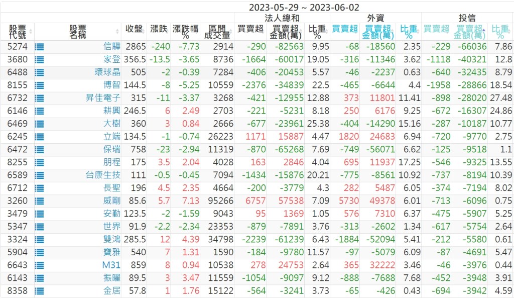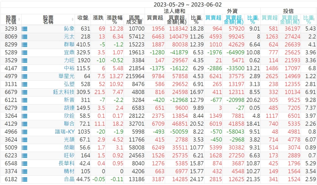 2023/05/29~2023/06/02近5日【投信】買賣超個股 2023-06-04 股狗網小編 投資誌-大盤 發表留言 投資達人APP上線囉!!!『安裝APP』: 【上市投信買超個股】(以金額排行,單位:萬) 【上市投信賣超個股】(以金額排行,單位:萬) 【上櫃投信買超個股】(以金額排行,單位:萬) 【上櫃投信賣超個股】(以金額排行,單位:萬) 免責宣言 本網站文章所提供資訊僅供參考,並無任何推介買賣之意,投資人應自行承擔交易風險。 分享此文: 分享到 X(在新視窗中開啟) X 分享到 Facebook(在新視窗中開啟) Facebook 喜歡 正在載入...