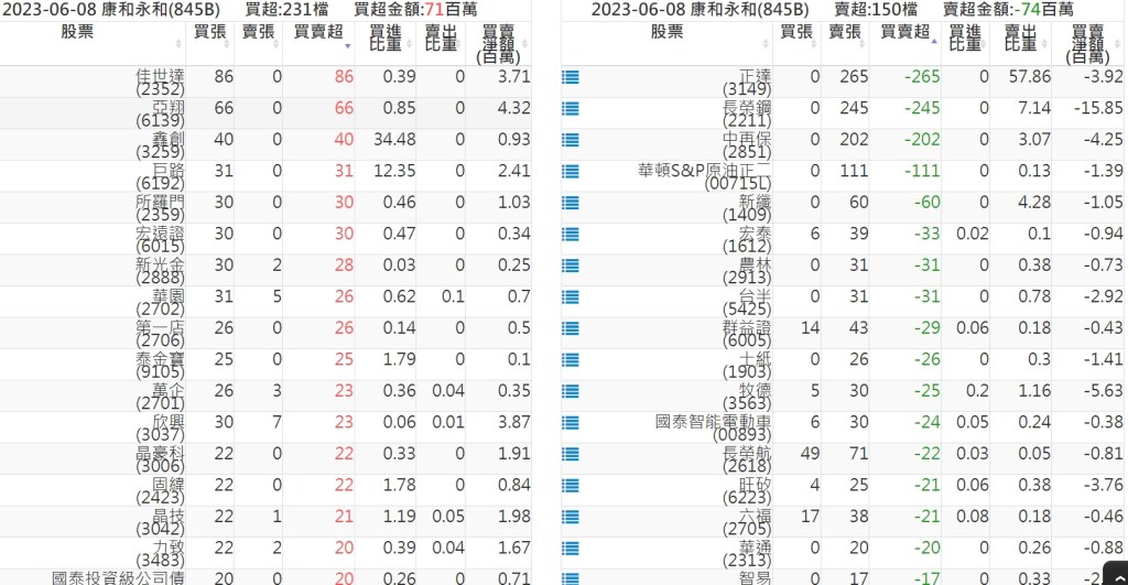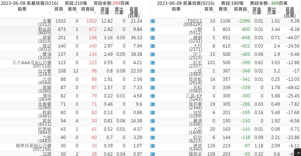 2023-0608關鍵券商買賣超 2023-06-09 股狗網小編 籌碼面每日資訊 發表留言 投資達人APP上線囉!!!『安裝APP』: 關鍵券商買賣超: 臺銀證券(1040): 台灣摩根士丹利(1470): 凱基台北(9268): 凱基信義(9216): 元大土城永寧(9875): 康和永和(845B) : 富邦建國(9658): 免責宣言 本網站文章所提供資訊僅供參考,並無任何推介買賣之意,投資人應自行承擔交易風險。 分享此文: 按一下即可分享至 X(在新視窗中開啟) X 按一下以分享至 Facebook(在新視窗中開啟) Facebook 喜歡 正在載入...